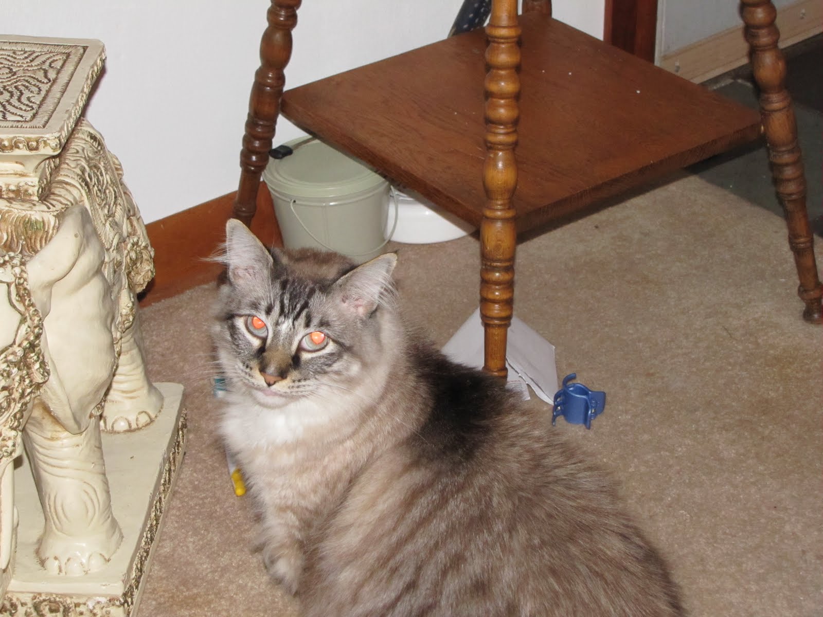 I had been living with my person - was the kitten of his kitty he had when he lived at home - I was his best friend .. then his work took him out of town and his roomate was mean to me - when he figured this out he started looking for another place to live but didnt want to leave me home with the mean roomate so he started looking for a place for me to go for a while so he could find us another home ... Momy said she would take me for a while ... after 6 months she told him he couldent have me back ..
